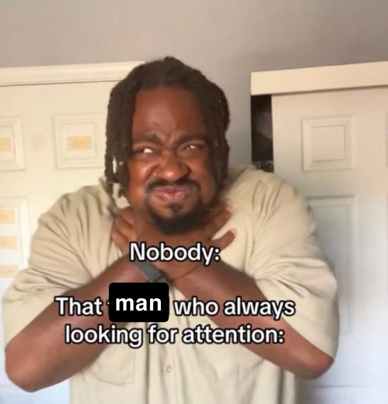 He doesn’t actually care about male victims. He’s not out here advocating on any other day. He is not doing the work or creating awareness on male victims. He only remembers them when he sees women talking about their harsh experiences. He only wants to shut you up, make you uncomfortable and stop you from talking about women’s very harsh realities that MEN are responsible for.